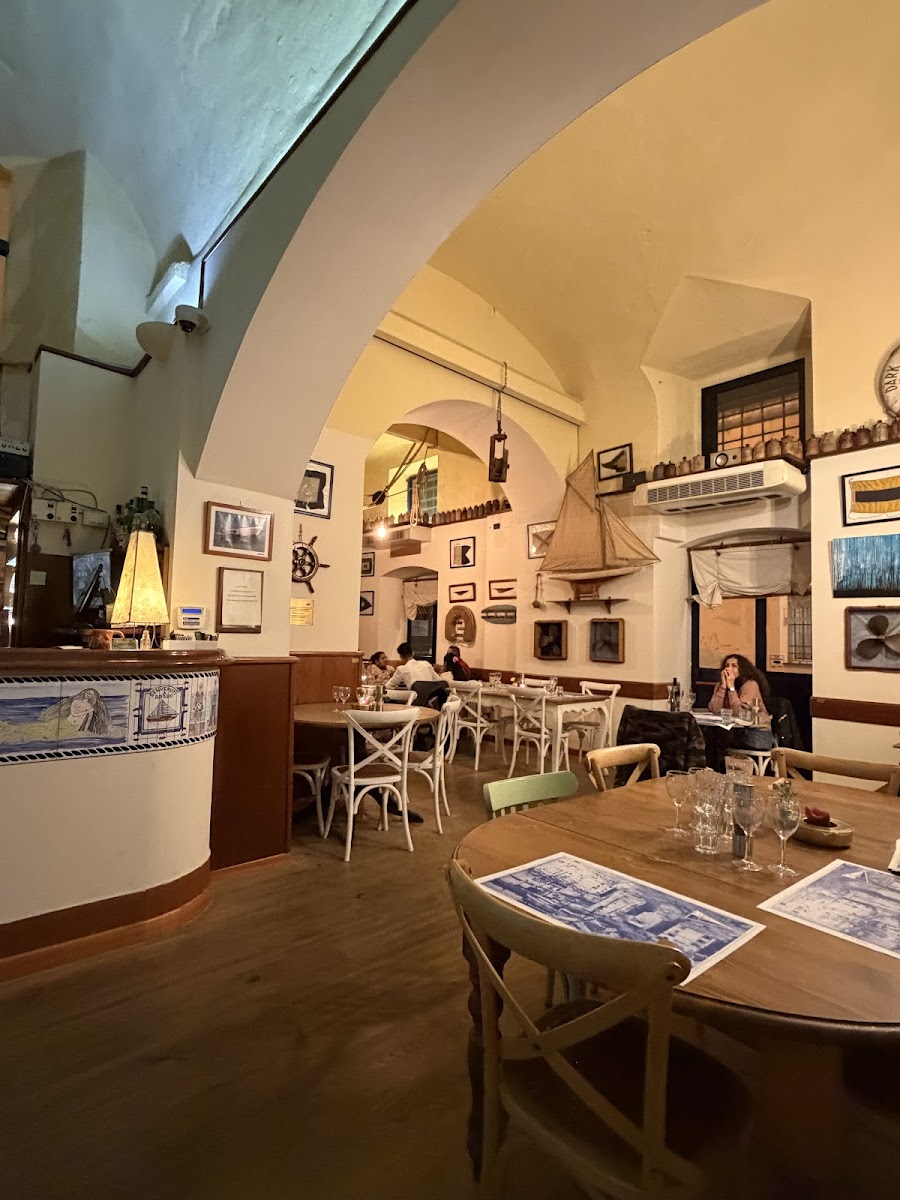 Very "marine" and genuine restaurant with lifeboats, fishing nets and sailing equipment hanging from ceilings! Excellent fish and sea food. Don't miss such suggestive and recommend location before leaving from Savona!